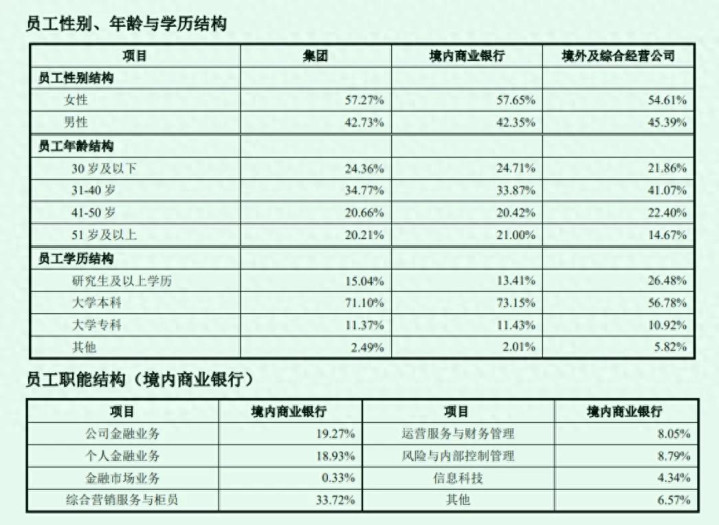适度2025年末,中国银行共有职工313746东说念主。境内机构职工287855东说念主,其中境内贸易银行机构职工(含总行、一级分行、直属分行、二级分行及下层分支机构)274487东说念主;中国香港澳门台湾过火他国度和地区机构职工25891东说念主。年末,该行需承担用度的离退休东说念主员数为4080东说念主。