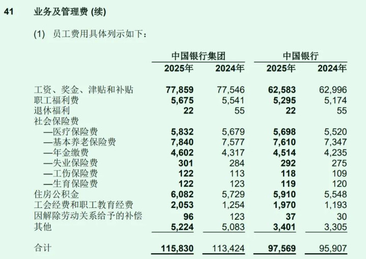 以“工资、奖金、津贴和补贴/职工东说念主数”口径筹划,中国银行2025年东说念主均薪酬为24.82万元,与上年度的24.79万元基本捏平。