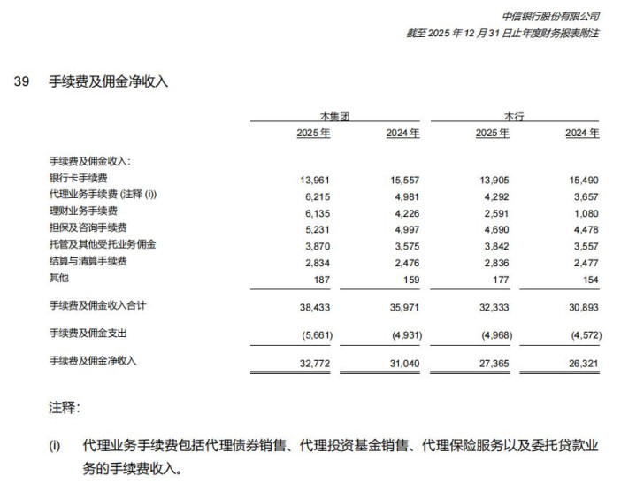 中信银行2025年年报判辨,在利息净收入、投资收益和公允价值变动收益均低于上年的同期,手续费及佣金净收入较上年增长,境外平台狡计收入和净利润也保合手增长。2025年该行手续费及佣金净收入为273.65亿元,高于上年的263.21亿元。其中,银行卡手续费由154.90亿元降至139.05亿元,代理业务手续费由36.57亿元升至42.92亿元,答理业务手续费由10.80亿元升至25.91亿元,担保及权略手续费、托管过火他受托业务佣金、结算与计帐手续费也均高于上年。