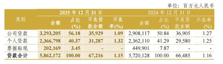 从中信银行2025年度汇报数据看,零卖银行业务分部利润占比较上年下落的同期,个东说念主贷款不良率较上年末飞腾,公司贷款不良率较上年末下落。2025年末,集团个东说念主贷款余额为23667.98亿元,较上年末增长0.20%,个东说念主不良贷款率较上年末飞腾0.07个百分点;与此相对,公司贷款余额较上年末增长13.24%,公司不良贷款率较上年末下落0.18个百分点。