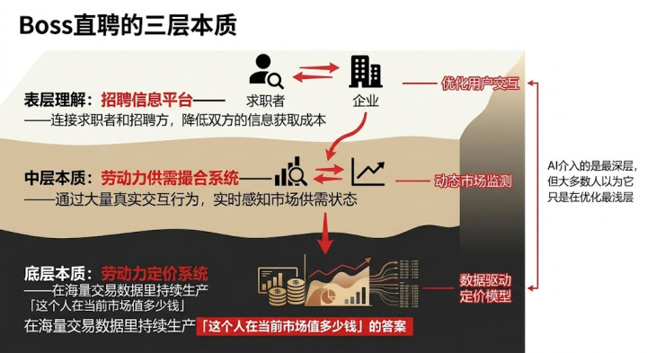 这篇著作想把这件事讲了了:Boss直聘的骨子是什么,AI介入之后发生了什么,以及这件事对你——无论你是作念居品的、正在求职的、照旧在招聘的——意味着什么。