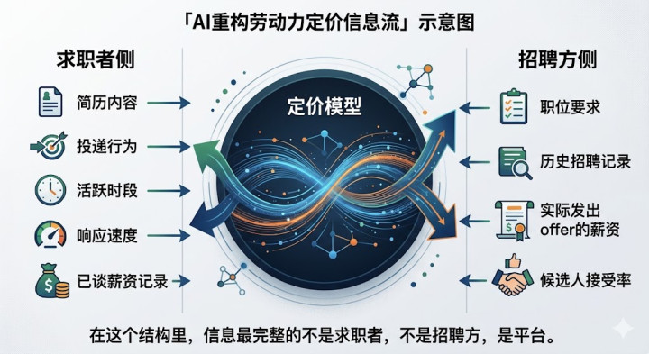 劳能源数据,是极其敏锐的数据类别。平台用算法影响薪资谈判的走向,用活跃度信号匡助招聘方判断求职者的议价底线,用历史成交数据为候选东说念主订价——这些作念法,在「进步匹配后果」的外套下,执行上是在用算法介入服务商酌的中枢议价门径。